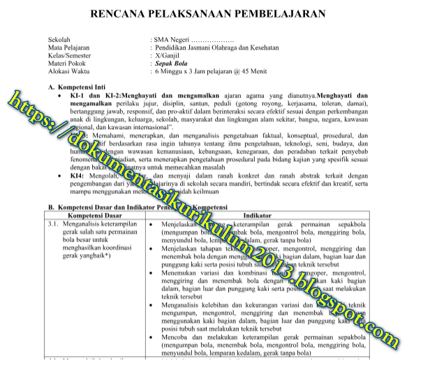 Rencana Pelaksanaan Pembelajaran RPP PJOK PENJAS Kelas 10